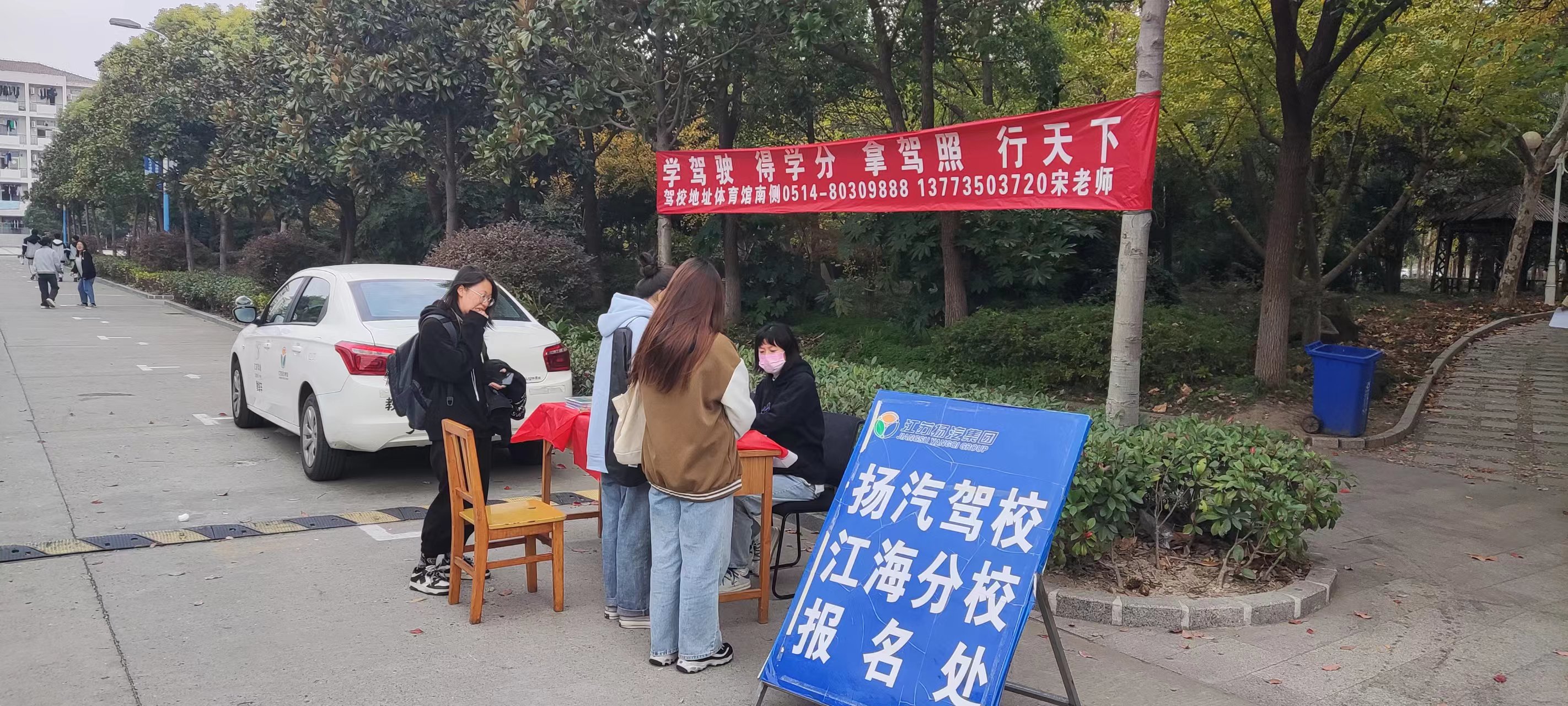 為持續推進黨建與業務相融合,11月9日至11月13日,揚汽駕校成立以骨干黨員為主的招生服務小組,走進江海學院,進行為期5天的招生宣傳。