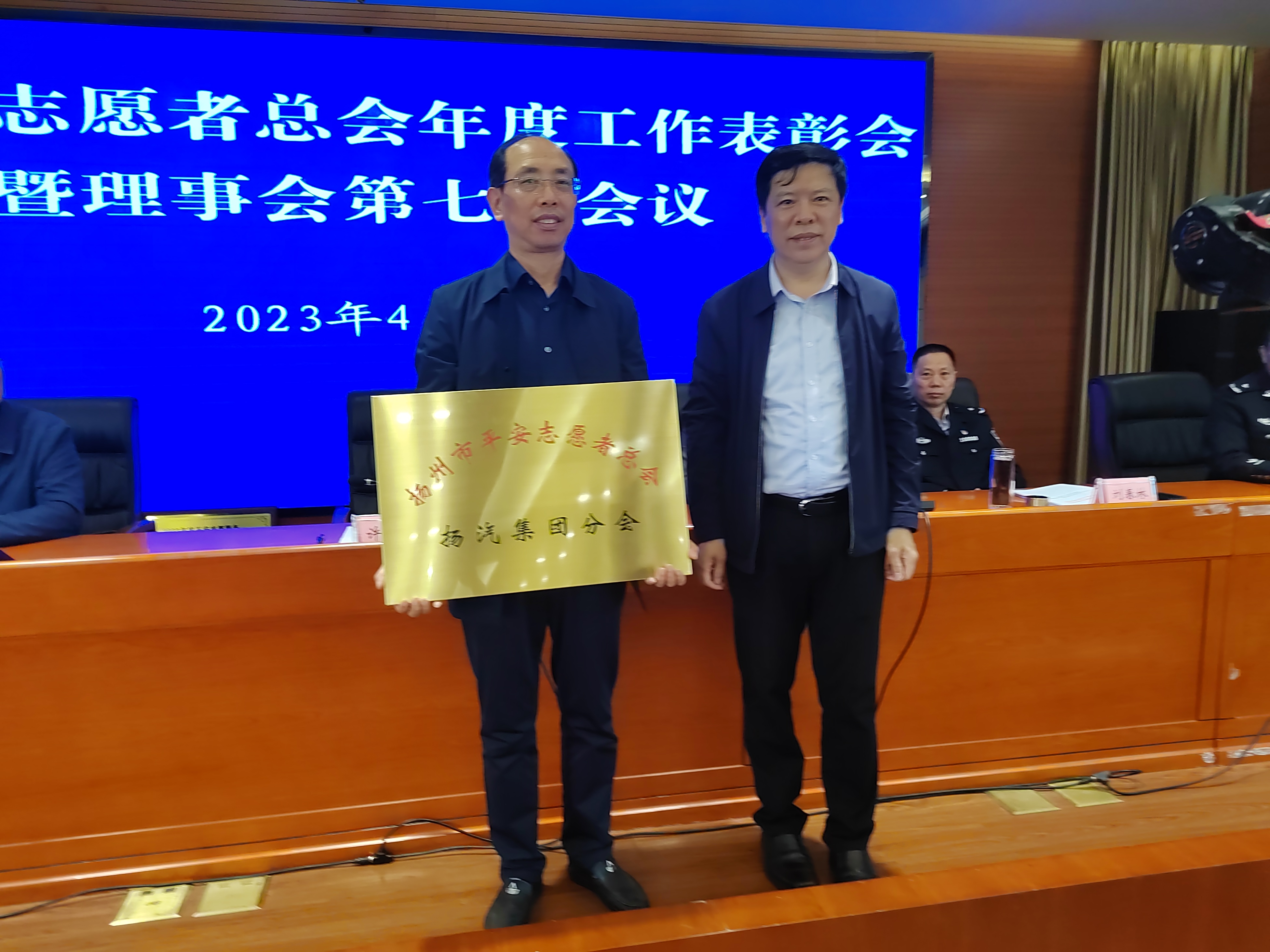 4月28日,揚州市平安志愿者總會召開理事會第七次(擴大)會議,市委政法委常務副書記許林燦出席會議。揚汽集團被授予分會單位,集團黨委副書記、紀委書記、工會主席陳家宏被任命為揚州市平安志愿者總會揚汽集團分會會長,工會副主席、黨群工作部經理孫進被任命為揚州市平安志愿者總會揚汽集團分會秘書長。