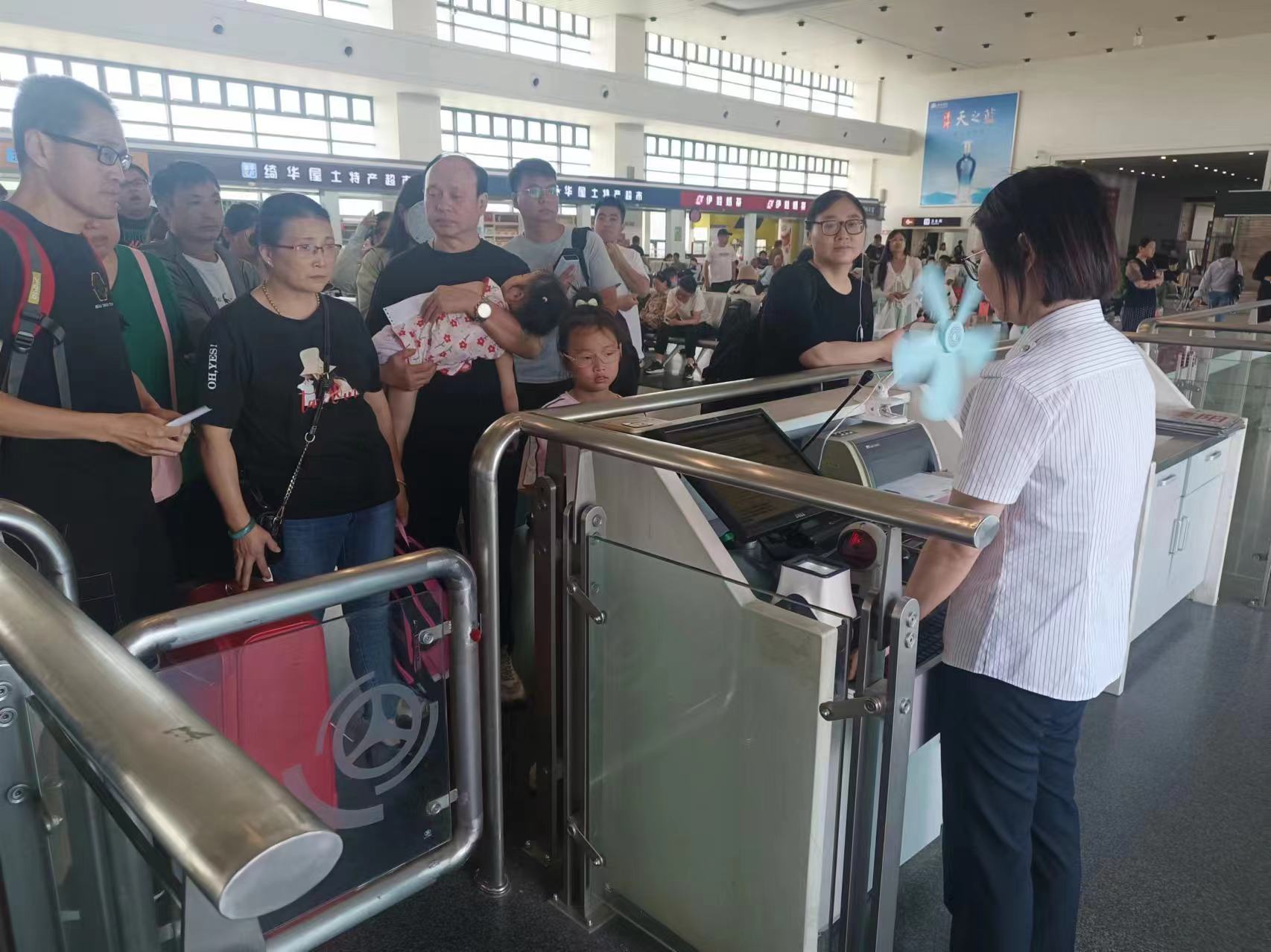 三、提升服務品質,營造溫馨環境。積極組織人員服務一線,到班次多、客流大的重點區域、重點門號,加強現場保障力量,為廣大旅客特別是老幼病殘孕軍等重點旅客提供問詢向導、協助購票、行李幫提、秩序維護、解答咨詢等全方位服務,切實保障廣大旅客安全、有序、溫馨、便捷出行。